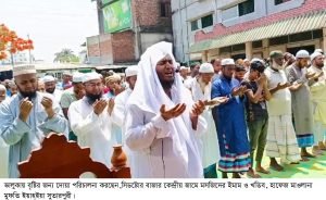 ময়মনসিংহের ভালুকায় তীব্র তাপদাহ থেকে মুক্তি ও স্বস্তির বৃষ্টির জন্য ইসতিসকার নামাজ আদায় করেছেন মুসল্লিরা। সোমবার (২৯ এপ্রিল) সকালে উপজেলার সিডষ্টোর বাজারস্থ হযরতুল উলুম হাফিজিয়া মাদরাসা মাঠে এ দোয়া অনুষ্ঠিত হয়। দোয়া পরিচালনা করেন, সিডষ্টোর বাজার কেন্দ্রীয় জামে মসজিদের ইমাম ও খতিব, হাফেজ মাওলানা মুফতি ইয়াহ্ইয়া সুতারপুরী। এ সময় উপজেলার বিভিন্ন এলাকা থেকে শত শত মুসল্লি নামাজ ও বিশেষ দেয়ায় অংশগ্রহণ করেন। এ সময় প্রকৃতিক দুর্যোগ থেকে মুক্তিসহ দেশ ও জাতির কল্যাণ কামনায় মুসুল্লিরা আল্লাহ তায়ালার সাহায্য কামনা করে কান্নাকাটি করেন।