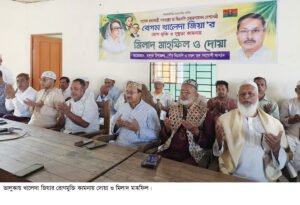 ময়মনসিংহের ভালুকায় সাবেক প্রধানমন্ত্রী ও বিএনপি চেয়ারপার্সন দেশনেত্রী বেগম খালেদা জিয়ার সুস্থ্যতা ও রোগমুক্তি কামনায় দোয়া ও মিলাদ মাহফিল অনুষ্ঠিত হয়েছে। মঙ্গলবার (২৫ নভেম্বর) দুপুরে উপজেলা বিএনপির দলীয় কার্যালয়ে উপজেলা ও পৌর বিএনপি, সকল অঙ্গ ও সহযোগী সংগঠনের উদ্যোগে ওই মাহফিলটি অনুষ্ঠিত হয়।