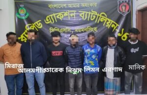 শনিবার (২০ ডিসেম্বর) ময়মনসিংহ জেলার ভালুকা থানাধীন স্কয়ার মাস্টারবাড়ি এলাকায় অভিযান পরিচালনা করে অভিযুক্তদের গ্রেপ্তার করে র্যাব।