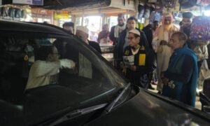 পরে গণসংযোগ শুরু হয় পৌর শহরের বাজার, বিপনি বিতান সহ বিভিন্ন এলাকায়। এসময় তিনি ভোটারদের সাথে শুভেচ্ছা বিনিময়, লিফলেট বিতরণ এবং ছাতা প্রতীকে ভোট ও দোয়া প্রার্থনা করেন।