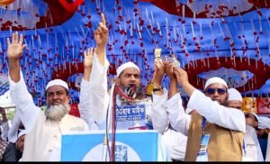 নির্বাচনীয় জনসভা শেষে ময়মনসিংহ ২ আসনের ১১ দলীয় জোটের মনোনীত প্রার্থী মুফতি মাহমুদুল্লাহ হাতে রিক্স প্রতীক তুলে দেন এবং আগামী ১২ তারিখে নির্বাচনে রিক্সা প্রতীক বিজয়ী করতে আহ্বান জানান।