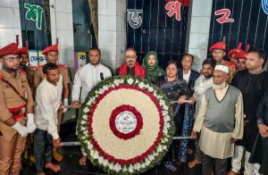 মহান শহিদ দিবস ও আন্তর্জাতিক মাতৃভাষা দিবস উপলক্ষ্যে একুশের প্রথম প্রহরে (২১ ফেব্রুয়ারি) ময়মনসিংহ নগরীর কেন্দ্রীয় টাউন হলের শহিদ মিনারে প্রথমে শহিদদের ফুল শ্রদ্ধা জানান ময়মনসিংহ- ০৪ সদর আসনের সংসদ সদস্য মো. আবু ওয়াহাব আকন্দ ওয়াহিদ। পরে একে একে ফুল দিয়ে শ্রদ্ধা জানান ময়মনসিংহ বিভাগীয় কমিশনার ফারাহ শাম্মী এনডিসি, ময়মনসিংহ রেঞ্জ ডিআইজি মোহাম্মদ আতাউল কিবরিয়া, ময়মনসিংহ জেলা প্রশাসক মোঃ সাইফুর রহমান,ময়মনসিংহ পুলিশ সুপার মোঃ মিজানুর রহমান ,ময়মনসিংহ আঞ্চলিক তথ্য অফিসের উপপ্রধান তথ্য অফিসার (রুটিন দায়িত্ব) মোঃ মাসুদ মিয়া। এছাড়াও ময়মনসিংহের বিভাগীয় ও জেলা পর্যায়ের অন্যান্য দপ্তর, স্থানীয় বিভিন্ন স্বেচ্ছাসেবী দল ও সংগঠন এবং ভাষাপ্রেমী জনতা শহিদদের প্রতি শ্রদ্ধা জ্ঞাপন করেন।